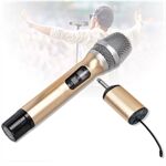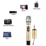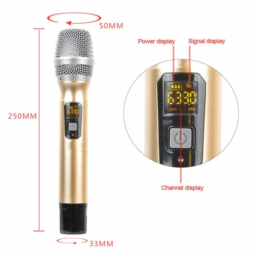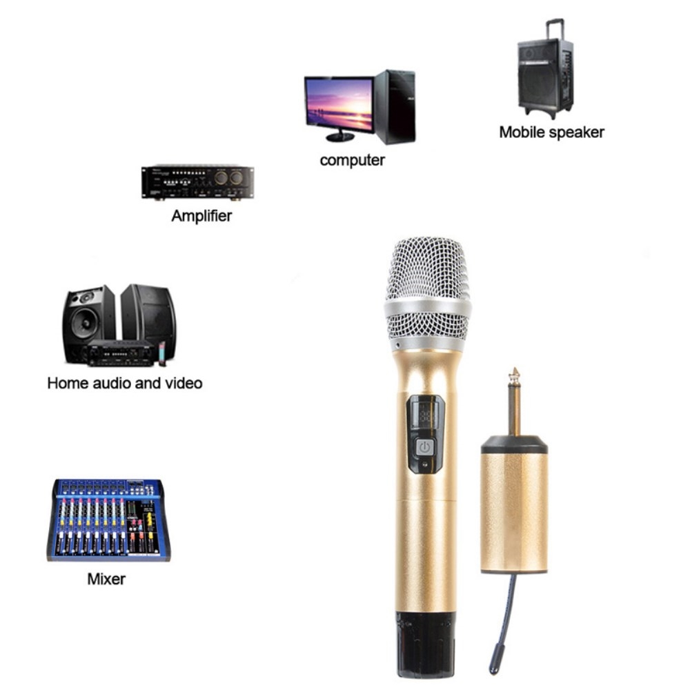 Wireless Handheld Microphone UHF Dynamic Mic System with Receiver for Computer Karaoke Conference - Gold
