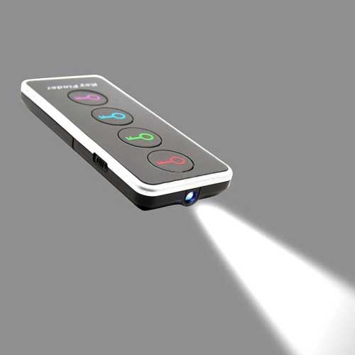 This is a unique key finder that works with advanced wireless technology and has a built-in LED flashlight. The ON / OFF switch is located on the right side of the transmitter, which allows you to turn the LED flashlight on and off.
