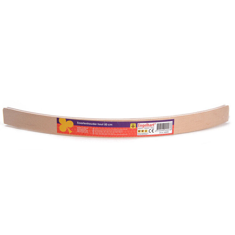 Extra long wooden card holder.
