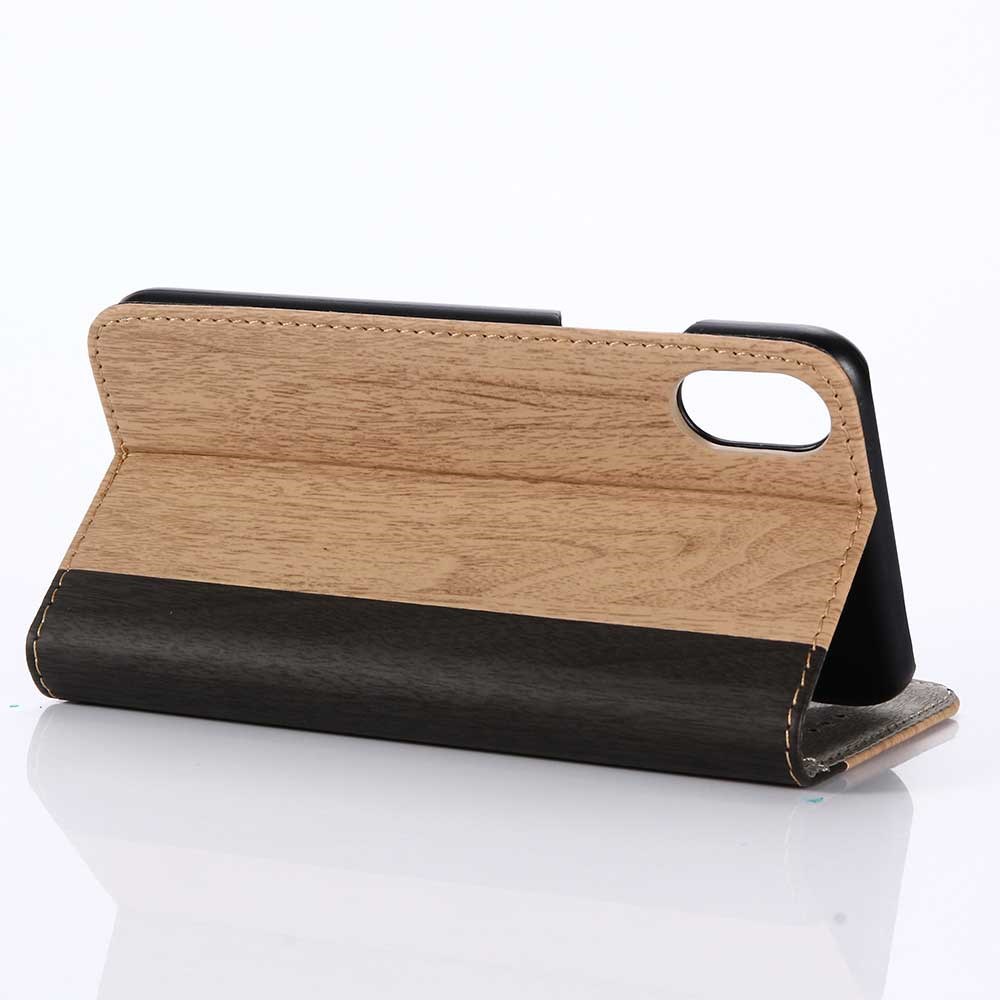 Woody Look Case in PU Leather w / Plastic Cover for iPhone X / iPhone Xs - Yellow