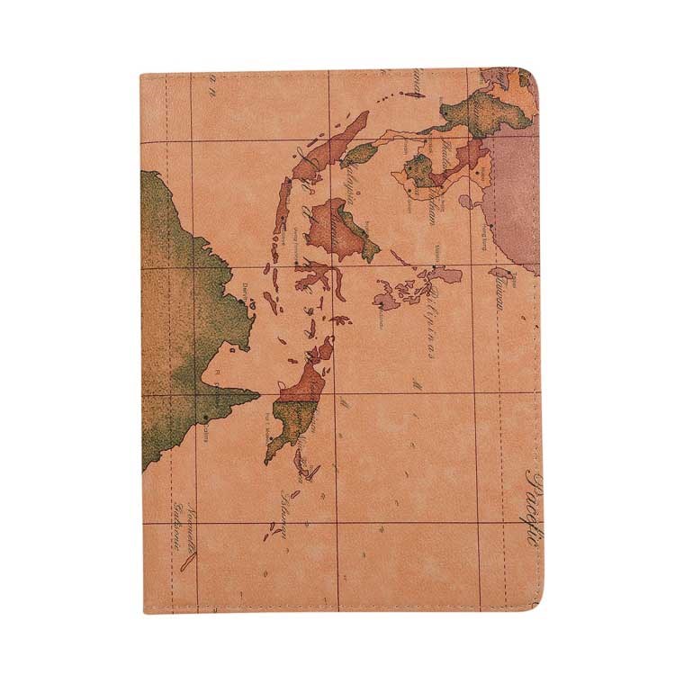 World map iPad Pro 11 rotating case. - The tablet snaps into the case.