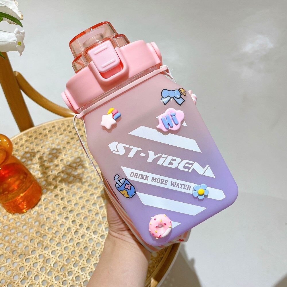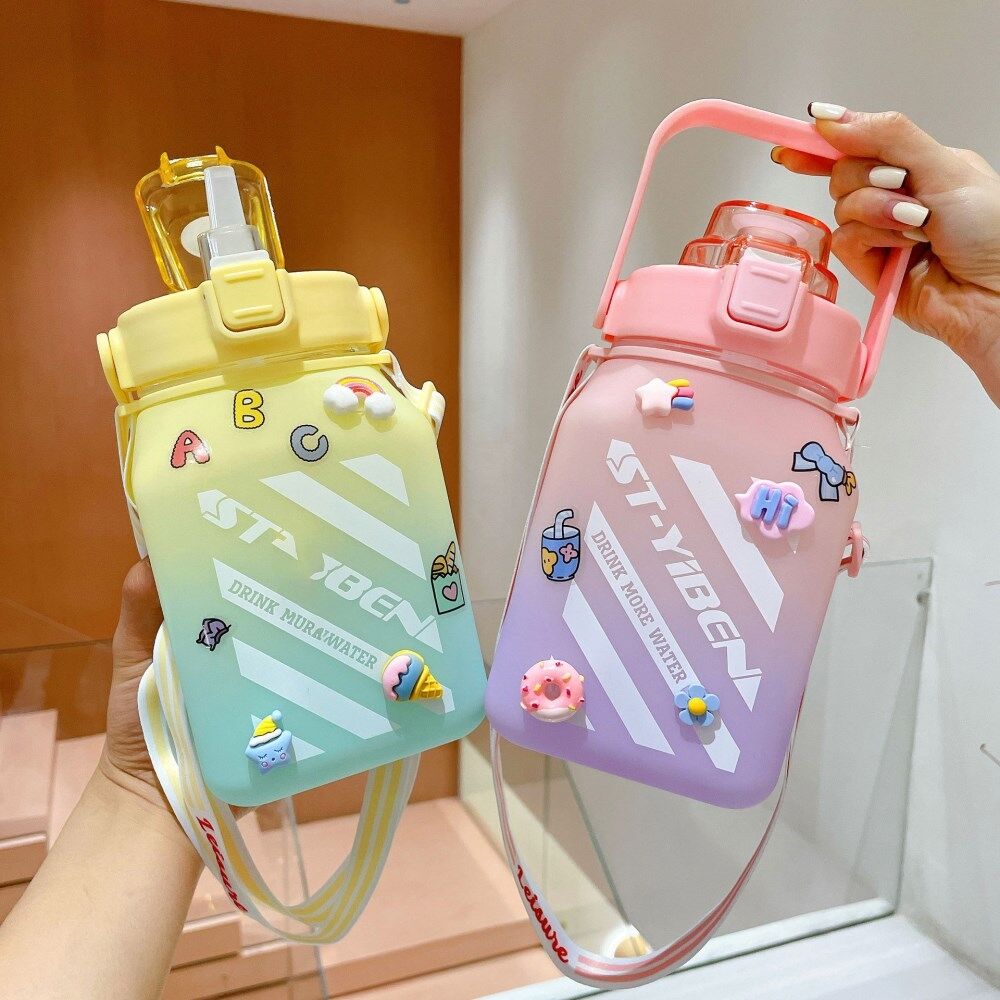 • Gradient water bottle with cartoon stickers, looks so beautiful