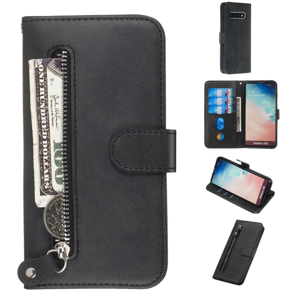 Zipper Pocket Magnetic Leather Stand Case for Samsung Galaxy S10 - Black